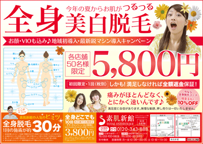 素肌新館では、豊富な脱毛箇所が揃っております。