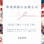 年末年始 営業について